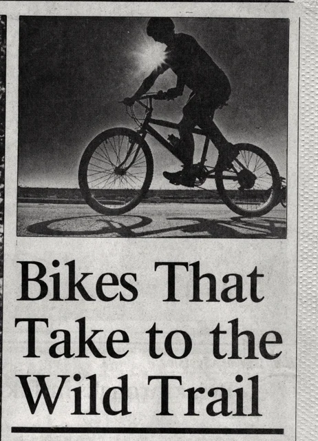 When mountain bikes came out, they had upright bars, comfortable seats, and the tires were big so if they had a leak it would still hold air for awhile. So suddenly, everybody had the bicycle they were begging the bike shops for, even though they never rode them in the dirt. Now mountain bikes have been around for a long time, and they really are bicycles for the dirt, not just ten-speeds with fat tires. So when you go to a bike shop, they don't say, "You need a mountain bike." They say, "What are you gonna do with it?" So you say, "I'm just gonna ride on the board walk and pick up chicks." So they say, "You don't want a mountain bike, you want one of these comfort bikes. They look kind of butch, but they've got skinnier tires, the seat's comfortable, and the handle bar's even higher."